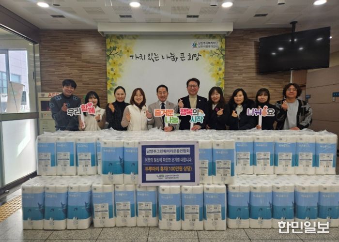 한민일보 서울포커스 김성윤 기자 | 남양주시는 지난 29일 남양주그린훼밀리운동연합이 남부희망케어센터에 지역 내 취약계층 지원을 위한 100만 원 상당의 두루마리 휴지 81묶음(1묶음 30개입)를 전달했다고 2일 밝혔다.