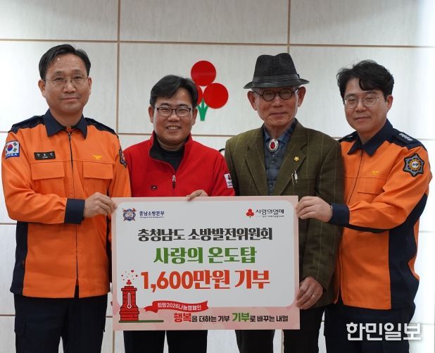 한민일보 서울포커스 최성훈 기자 | 충청남도 소방발전위원회(소방정책 자문·협의기구)는 지난 30일 연말연시 이웃돕기 성금 모금인 ‘사랑의 온도탑’에 성금 1600만 원을 기탁했다고 1일 밝혔다.