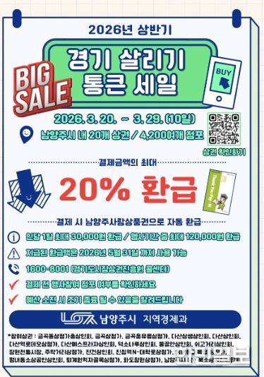 경기도와 경기도시장상권진흥원이 주관하고 남양주시가 함께 추진하는 이번 행사에는 관내 권역별 주요 20개 전통시장과 골목상권 내 소상공인 4,200여 개 점포가 대거 참여해 시민들에게 실질적인 할인 혜택을 제공한다.