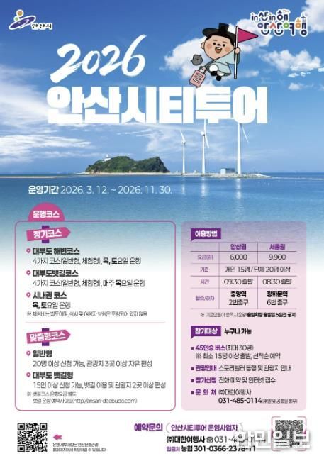 이민근 안산시장은 “2026 안산시티투어는 시화호 뱃길 개통과 함께 안산의 다양한 관광 자원을 연결하는 핵심 관광 콘텐츠가 될 것”이라며 “시민과 관광객 모두가 안산의 매력을 편안하게 즐길 수 있도록 관광 활성화에 힘쓰겠다”고 말했다.