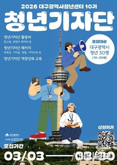 한민일보 서울포커스 김봉순 기자 | 대구광역시는 지역 청년정책과 청년 활동의 현장을 청년의 시각에서 취재하고 전달할 ‘제10기 청년기자단’을 오는 3월 30일까지 모집한다.