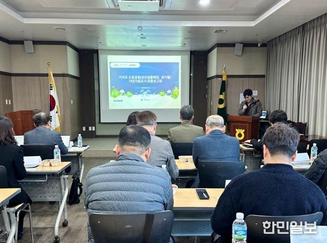 한민일보 서울포커스 김다남 기자 | 서귀포시는 19일 서귀포시축협 축산물플라자 세미나실에서 국립공원연구원 연구진, 지역 주민 등 20여 명이 참석한 가운데 ‘서귀포시 도립공원(성산일출해양, 제주곶자왈) 자연자원조사 최종보고회’를 갖고, 지난 1년간의 조사 성과와 향후 관리 방안을 공유했다.