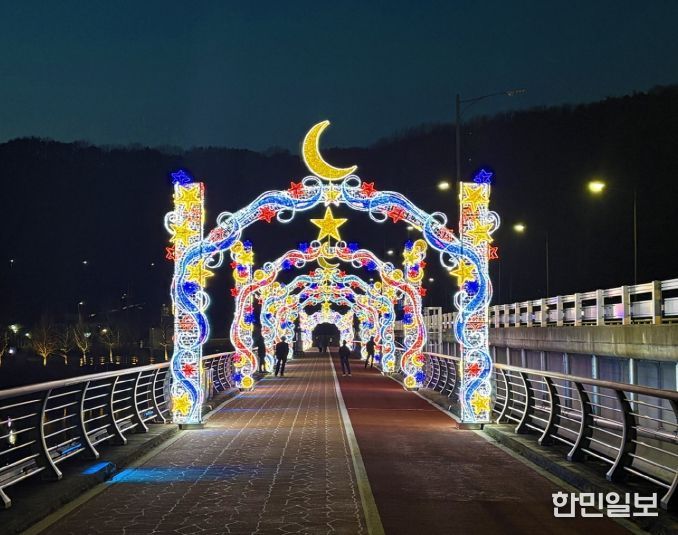 루미나리에는 조명을 활용해 구조물과 공간을 연출하는 야간 경관 조성 기법으로, 이번에 설치된 시설은 별과 달을 모티브로 한 조형물과 곡선형 아치 구조로 구성됐다. 교량 전 구간에 총 10개소가 설치돼 점등 시 ‘빛의 터널’과 같은 환상적인 경관을 연출한다. 시는 이를 통해 방문객들에게 새로운 볼거리를 제공하고 야간 포토존으로서의 기능을 강화할 계획이다.