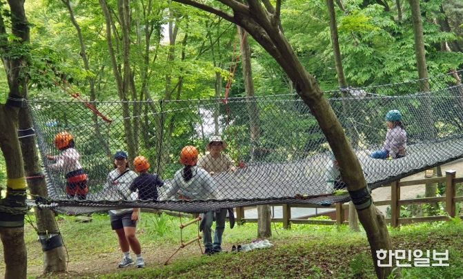 이곳에서는 전문 강사의 지도 아래 트리클라이밍과 버마다리, 짚라인 등 나무와 로프를 활용한 산림 체험이 진행된다.