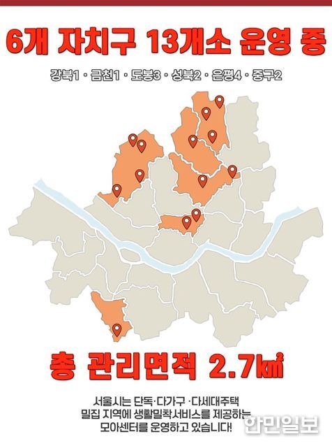 한민일보 서울포커스 국용호 기자 | 서울시는 빌라·단독주택 골목의 순찰·시설점검·소규모수리 등 아파트 관리사무소처럼 공공 관리하는 ‘모아센터’를 기존 13개소에서 28개소로 두 배 이상 늘린다.