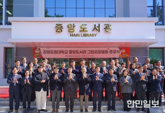 한민일보 서울포커스 곽중희 기자 | 강원도립대학교는 20일 오전 11시, 대학 내 중앙도서관에서 ‘중앙도서관 그린리모델링 준공식’을 개최하고, 친환경 스마트 교육 환경을 기반으로 한 지역 상생 복합문화공간의 본격적인 운영을 알렸다.