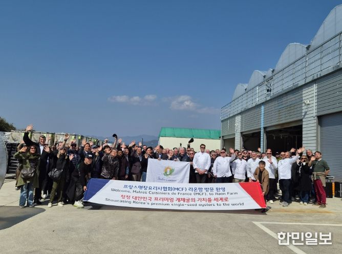 한민일보 서울포커스 김은금 기자 | 세계 최고의 미식 권위를 자랑하는 프랑스명장요리사협회(Maîtres Cuisiniers de France) 소속 셰프 180여 명을 포함한 관계자 200여 명이 2026년 3월 21일 경남 거제시의 개체굴 생산 현장인 ‘라온팜’(대표 엄성)을 방문했다.