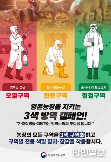 주요 방역 수칙은 △외부인 및 축산 관련 차량의 농장 출입 최소화 △유효 소독제를 활용한 돈사 내·외부 및 장비·의복·신발 등에 대한 철저한 소독 △모돈 백신 접종 관리 △신규 입식 돼지 격리 관찰 후 입식 등이다.