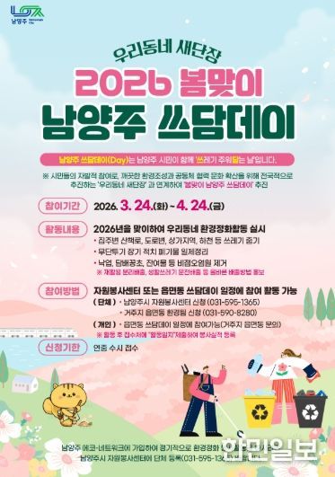 한민일보 서울포커스 김성윤 기자 | 남양주시는 3월 24일부터 4월 24일까지 시 전역에서‘우리동네 새단장 봄맞이 남양주 쓰담데이’집중 추진기간을 운영한다고 밝혔다.