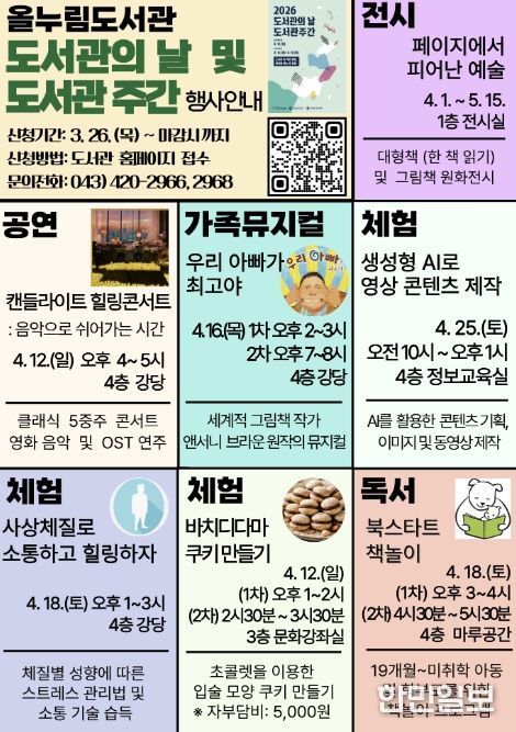한민일보 서울포커스 김다남 기자 | 단양군이 ‘2026 도서관의 날·도서관 주간’을 맞아 다채로운 독서문화 행사를 운영한다.
