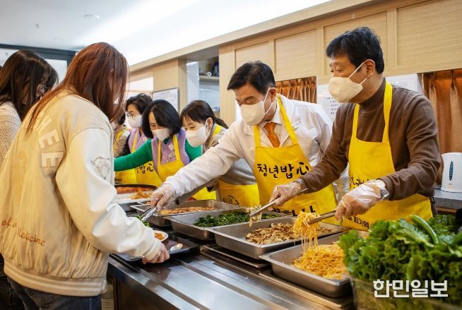 한민일보 서울포커스 임광현 기자 | 서울 동대문구 경희대 정문 옆 연화사 공양간에 점심시간을 앞두고 대학생들이 하나둘 모여들었다. 수업을 마친 학생들이 줄을 서자 사찰 안은 금세 북적였다. 스님들과 자원봉사자들이 분주히 음식을 나르고, 공양간 앞에서는 학생들끼리 “오늘 메뉴가 뭐냐”며 웃음 섞인 대화를 주고받았다. 그 줄 앞에 이필형 동대문구청장도 섰다. 학생들에게 직접 음식을 건네며 “밥 잘 챙겨 먹고, 학업과 미래 준비도 힘내라”고 말을 건넸다. 이 구청장은 연화사 ‘청년밥心’ 현장에서 배식자로 참여해 대학생들을 격려했다.