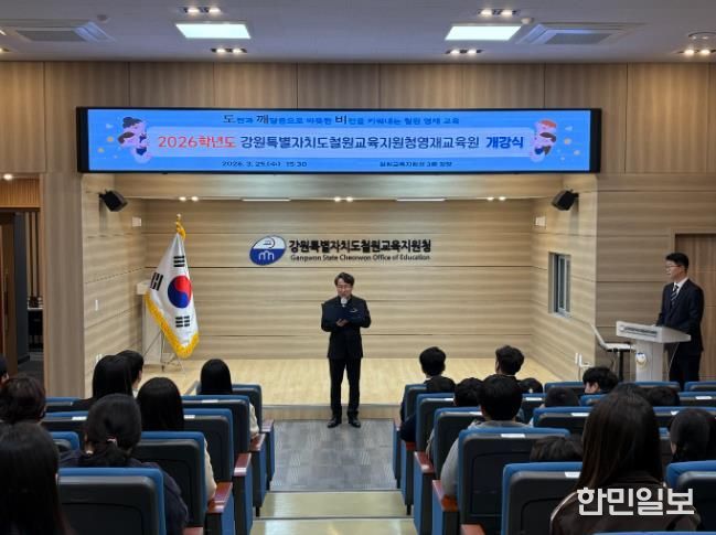 한민일보 서울포커스 곽중희 기자 | 강원특별자치도철원교육지원청은 3월 25일 오후 3시 30분, 철원교육지원청 3층 강당에서 학생과 학부모, 지도교사 등 100여 명이 참석한 가운데 ‘2026학년도 강원특별자치도철원교육지원청영재교육원 개강식’을 개최했다.