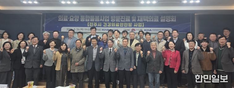 한민일보 서울포커스 김용택 기자 | 전주시와 전주시의사회는 지난 26일 전주병원 별관 회의실에서 의료·요양 통합돌봄사업 시행을 앞두고 지역 의료계의 이해를 높이기 위한 ‘전주시 통합돌봄사업 건강의료안전망’ 설명회를 개최했다.