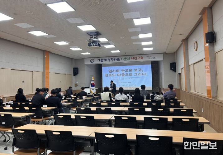 한민일보 서울포커스 임경복 기자 | 서산교육지원청은 지난 26일 대회의실에서 관내 초·중·고등학교 진로 전담 교사 및 교감 33명을 대상으로 ‘입시의 눈으로 보고, 진로의 마음으로 그리다’ 연수를 개최하여 학교 현장의 진로 교육 역량을 한 차원 높였다. 본 연수는 급변하는 대학 입시 제도와 고교학점제 등 교육 정책의 변화 속에서 데이터 기반의 정교한 분석력을 확보하고, 이를 학생 개개인의 고유한 특성과 연결하는 ‘공감 중심의 진로 설계’ 체계를 정착시키기 위해 마련됐다.