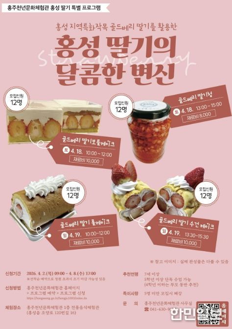 한민일보 서울포커스 유돈상 기자 | 홍성군 홍주천년문화체험관은 오는 4월 18일부터 19일까지 이틀간, 지역특화작목인 골드베리 딸기를 활용한 특별 프로그램을 운영한다고 밝혔다.