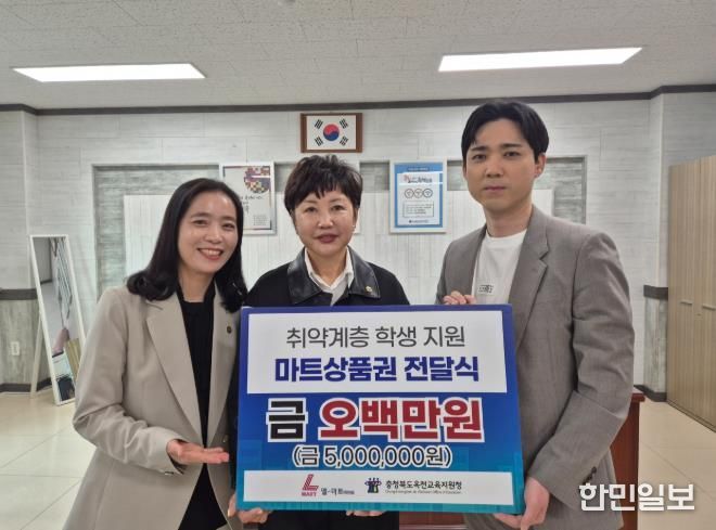 한민일보 서울포커스 김다남 기자 | 옥천교육지원청은 지역 자원을 활용하여 교육복지안전망을 강화하고 취약계층 학생들 50여 명에게 실질적인 도움을 제공하고자 ㈜엘마트 옥천점로부터 500만원 상당의 식료품 구매 상품권을 기탁받아 지원할 예정이라고 밝혔다.