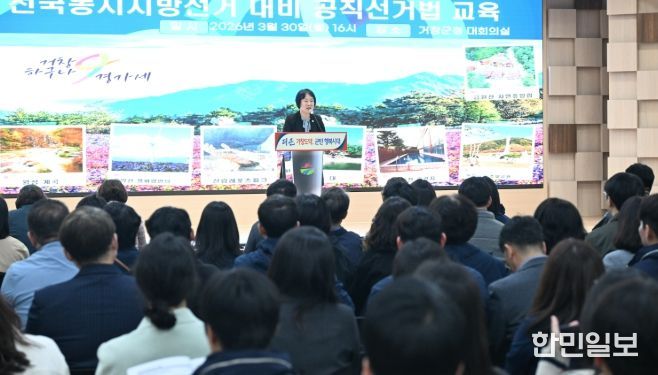 한민일보 서울포커스 김서윤 기자 | 거창군은 지난 30일 군청 대회의실에서 다가오는 제9회 전국동시지방선거를 앞두고 공무원의 선거 관여 행위를 예방하고 공명선거 분위기를 조성하기 위해 소속 직원들을 대상으로 ‘공직선거법 교육’을 실시했다.