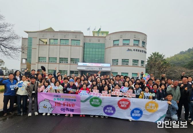한민일보 서울포커스 김은금 기자 | 김해시는 (사)한국후계농업경영인 김해시연합회와 함께 제주도에서 열린 전국대회에서 청렴 문화 확산을 위한 ‘Hi-Five 약속 청렴 캠페인’을 추진했다고 밝혔다.