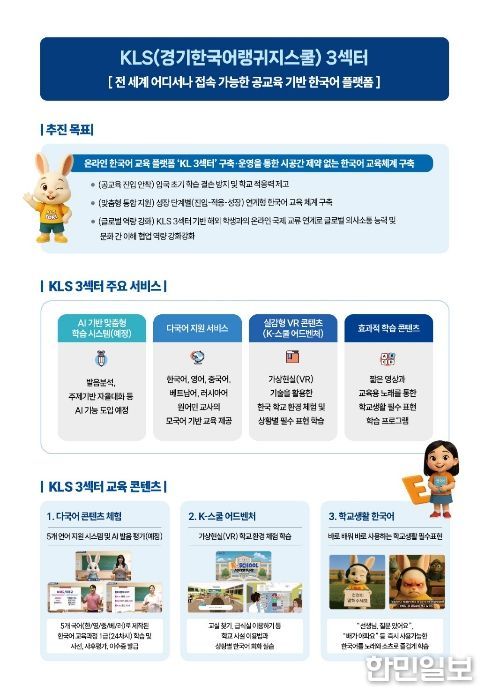 당시 임 교육감이 약속한 한국어교육 지원을 바탕으로 경기도교육청은 약 1년간 콘텐츠 개발과 플랫폼 구축을 추진해 경기한국어랭귀지스쿨(KLS) 3섹터를 완성하고 해외 현장 적용까지 이뤄냈다.