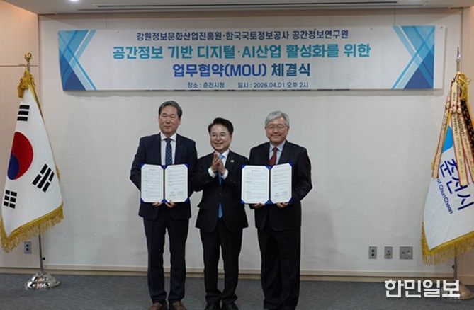 한민일보 서울포커스 곽중희 기자 | 강원정보문화산업진흥원과 한국국토정보공사 공간정보연구원이 공간정보 기술과 디지털·AI 산업의 융합을 통한 지역경제 활성화와 관련 산업 진흥을 위해 업무협약을 체결했다. 이번 협약은 지역 중심의 공간정보 기반 디지털·AI 산업 활성화를 위한 협력체계를 확립하고, 양 기관의 전문성과 역량을 연계하기 위해 추진됐다.