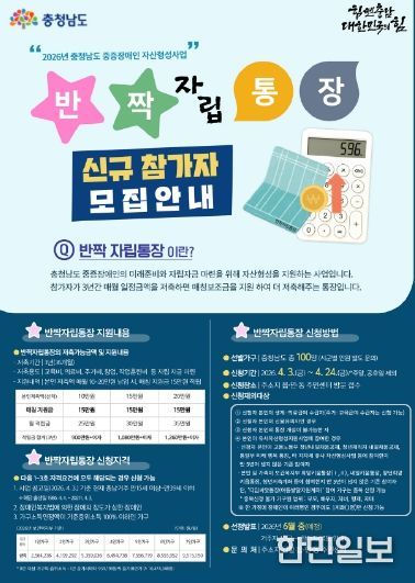 한민일보 서울포커스 유돈상 기자 | 금산군은 중증장애인의 경제적 자립 기반 마련을 돕기 위해 오는 4월 3일부터 24일까지 반짝 자립통장 신규 가입자 12명을 모집한다.