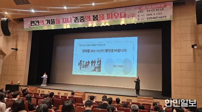 군은 지난 1일 청양군 문예회관 대공연장에서 소속 직원 300여 명이 참석한 가운데 ‘2026년 사회적 장애인식개선 교육’을 실시했다고 밝혔다.