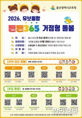 한민일보 서울포커스 임경복 기자 | 울산광역시교육청은 교육부의 ‘정부 책임형 유보통합’ 정책에 맞춰 안정적인 교육, 돌봄 환경을 조성하고자 ‘든든 365 거점형 돌봄 기관’ 12곳을 선정하고 오는 12월까지 시범 운영에 들어간다.