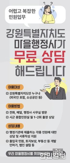 한민일보 서울포커스 진광성 기자 | 강원특별자치도와 홍천군은 4월부터 군민들의 행정적 불편을 해소하고 권익을 보호하기 위해 신규 시책인 ‘마을 행정사’ 제도를 본격 운영한다.