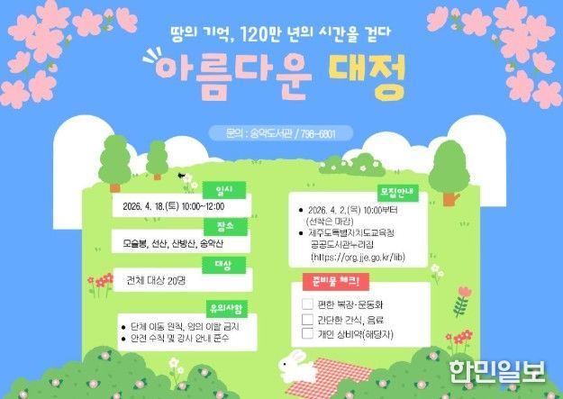 참가자 모집은 4월 2일 오전 10시부터 제주특별자치도교육청 공공도서관 누리집을 통해 온라인으로 신청할 수 있다.