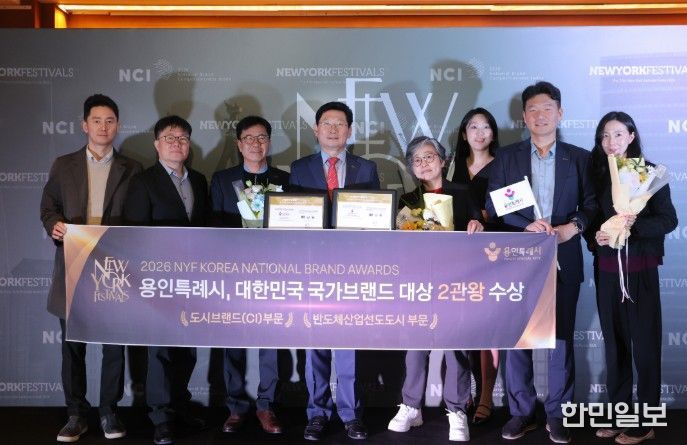 한민일보 서울포커스 김성윤 기자 | 용인특례시가 칸 국제광고제, 클리오광고제와 함께 세계 3대 광고제로 꼽히는 뉴욕페스티벌(NYF)이 주관하는 ‘2026 뉴욕페스티벌 대한민국-국가브랜드 대상’(NYF K-NBA)에서 도시브랜드(CI) 부문과 반도체산업 선도 도시 부문 1위로 선정됐다.