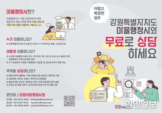 강원특별자치도가 임명한 마을행정사는 재능기부를 통해 무료 상담과 서류 작성 지원 서비스 등을 제공한다.