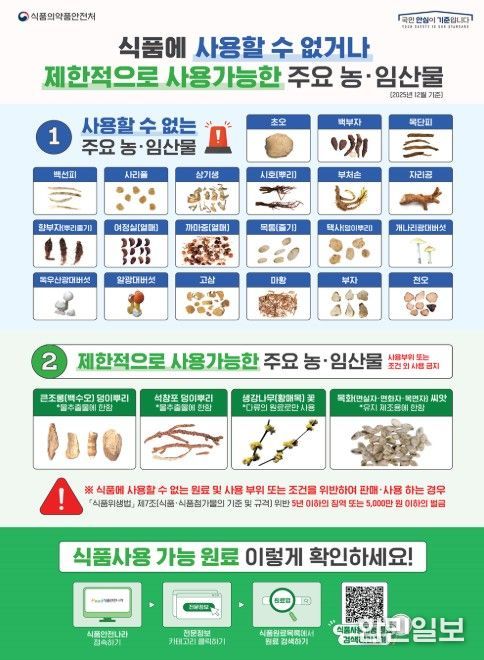 식약처는 안전성이 입증되지 않은 농·임산물 섭취로 인한 피해를 예방하기 위해 섭취 전 식품안전나라 누리집에서 식품으로 섭취할 수 있는 농·임산물의 종류 및 식용 가능 부위 등을 확인할 것을 당부했다.