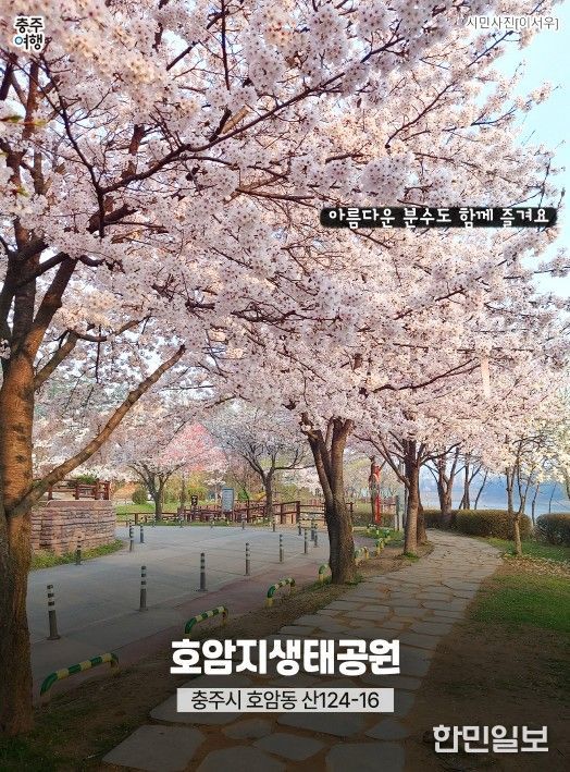 호암지 생태공원은 호수 산책로를 따라 핀 벚꽃이 수면에 비쳐 몽환적인 분위기를 자아내며, 연꽃공원과 탄금공원은 넓은 잔디밭과 함께 여유로운 ‘꽃크닉(꽃+피크닉)’을 즐기기에 안성맞춤이다.
