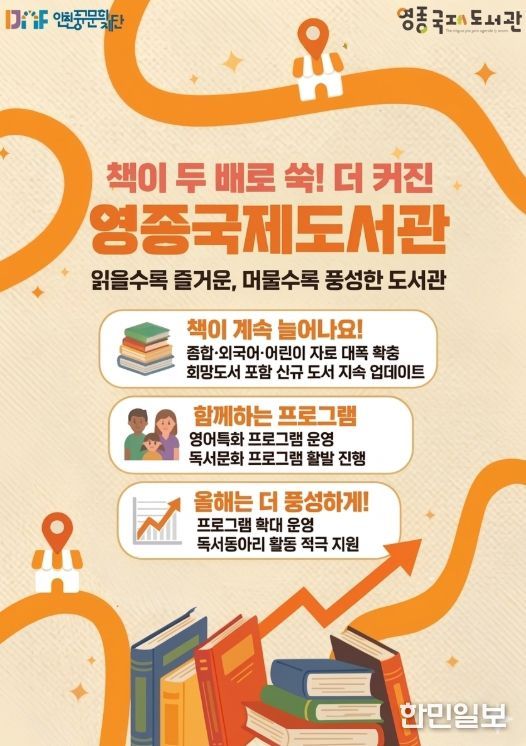 한민일보 서울포커스 김다남 기자 | 인천중구문화재단은 올해 ‘영종국제도서관’이 지역문화의 중심이자 지식의 허브로 자리매김할 수 있도록 다양한 노력을 기울일 방침이라고 6일 밝혔다.