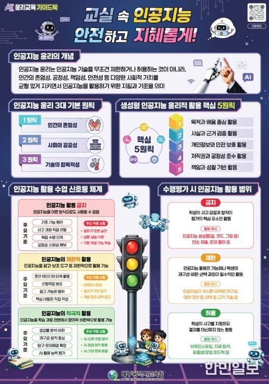 한민일보 서울포커스 임경복 기자 | 대구시교육청은 인공지능(AI) 기술이 일상과 교육 전반에 빠르게 확산되는 환경 속에서, 학생들이 기술을 올바르고 책임 있게 활용할 수 있도록 지원하기 위해‘AI 윤리교육 가이드북’과 ‘범교과 SW·AI 디지털 시민윤리 교수∙학습자료’를 개발해 학교 현장에 보급한다.