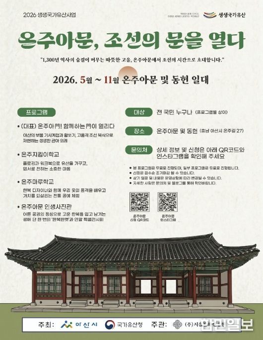 한민일보 서울포커스 임경복 기자 | 아산시는 ‘2026년 아산 방문의 해’를 맞아 국가유산인 온주아문과 동헌 일원을 활용한 ‘생생 국가유산 사업’을 본격 추진하며 시민들에게 특별한 역사·문화 체험 기회를 제공한다.