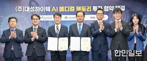 한민일보 서울포커스 임철현 기자 | 대구광역시는 4월 7일 시청 산격청사에서 초정밀부품 제조 전문기업인 ㈜대성하이텍(대표 최우각, 최호형)과 ‘인공지능(AI) 자율제조 시스템 기반 메디컬 팩토리’ 건립을 위한 투자협약을 체결했다.