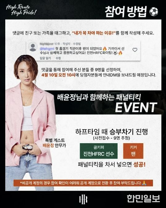 이날 현장에서는 경기 하프타임을 활용해 인기 안무가 배윤정 씨와 함께하는 승부차기 이벤트도 진행될 예정이다.