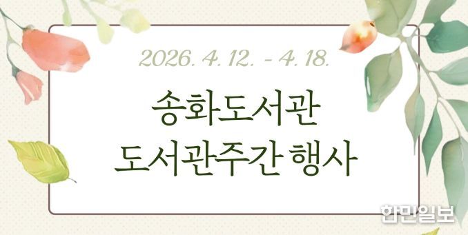 한민일보 서울포커스 김봉순 기자 | 송화도서관은 제62회 도서관주간과 세계 책의 날을 맞아 오는 12일부터 18일까지 ‘도서관 속 작은 펼침, 세상을 여는 큰 열림’을 주제로 다양한 강연과 행사를 진행한다.