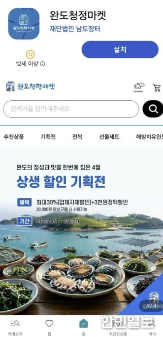 한민일보 서울포커스 박용남 기자 | 완도군은 4월 6일 특산품 온라인 쇼핑몰인 ‘완도 청정 마켓’의 앱을 출시했다.