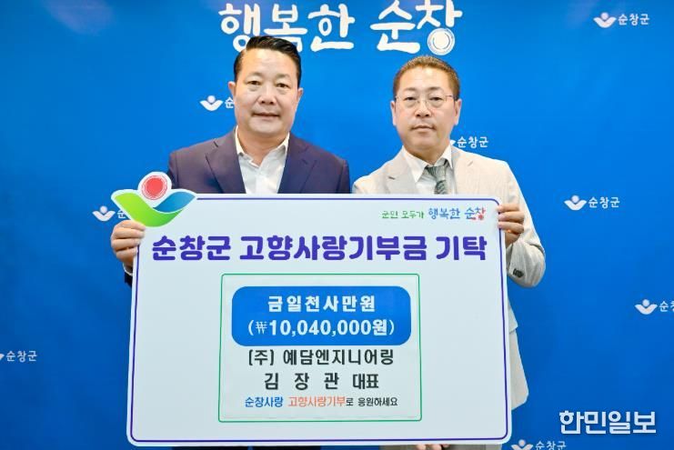 한민일보 서울포커스 김용택 기자 | 순창군은 10일 (주)예담엔지니어링 김장관 대표가 고향사랑기부금 1,004만원을 기탁하며 순창에 대한 각별한 애정을 전했다고 밝혔다.