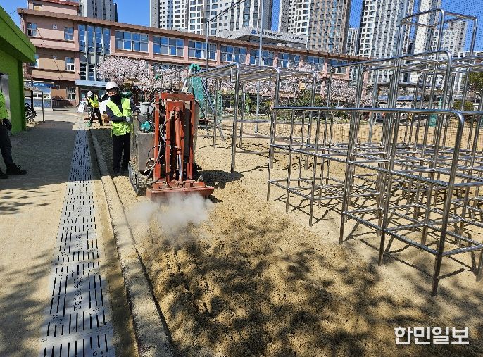 특히 전문 업체에서 놀이기구와 바닥재를 고온·고압의 스팀으로 소독하고 모래 바닥재 기생충(란) 검사도 병행 지원하여 학교 행정업무 부담이 경감될 것으로 기대된다.