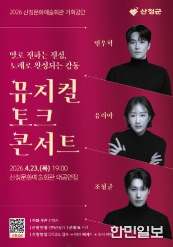 한민일보 서울포커스 김은금 기자 | 산청군은 오는 23일 문화예술회관 대공연장에서 ‘민우혁×유리아×조형균 뮤지컬 토크 콘서트’를 개최한다고 10일 밝혔다.