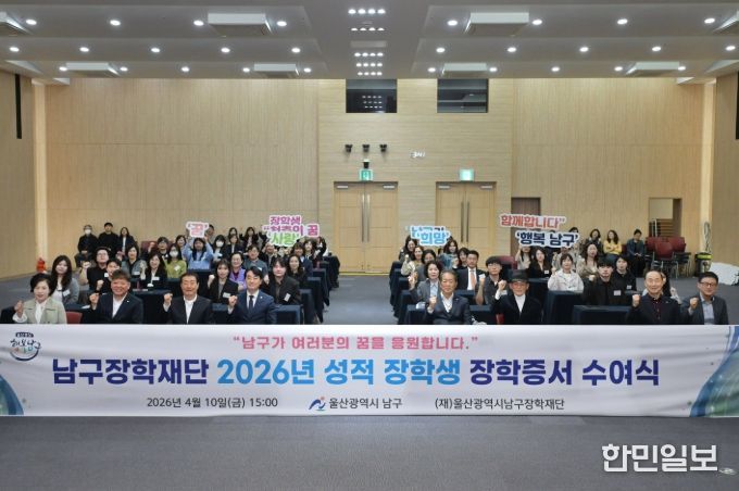 한민일보 서울포커스 기자 | 울산 남구는 10일 남구청 대강당에서 2026년도 성적우수 장학생 장학증서 수여식을 개최했다.