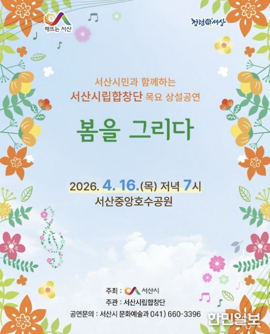 김기윤 서산시 문화예술과장은 “이번 공연을 통해 봄의 정취를 만끽하며 지친 일상에서 잠시 힐링하는 시간을 가지시길 바란다.”라며 “앞으로도 시립합창단의 다양한 활동을 통해 시민들의 문화 접근성을 더욱 확대해 나가겠다.”라고 말했다.