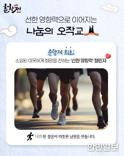 한민일보 서울포커스 박용남 기자 | 남원시의 대표 축제인 ‘제96회 춘향제’가 올해 96주년을 맞아 사랑과 나눔의 의미를 담은 특별한 기부 레이스로 전 국민을 찾아간다.