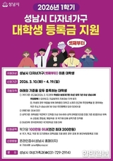 성남시, 셋째 이상 대학생에 '학기당 최대 100만원' 등록금 지원