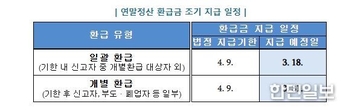국세청, 연말정산 환급금, 최대한 앞당겨 3월에 드립니다