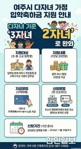 여주시, 다자녀 기준 2자녀로 완화 3월부터 다자녀 가정 입학축하금 신청