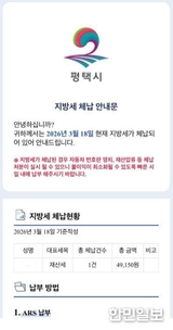 평택시, 모바일 메신저 통해 지방세 체납안내문 발송